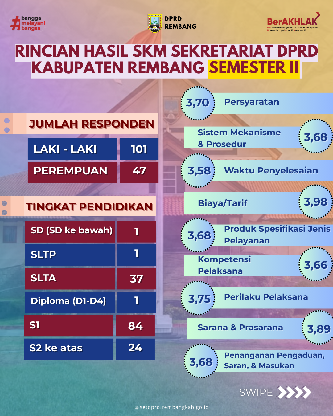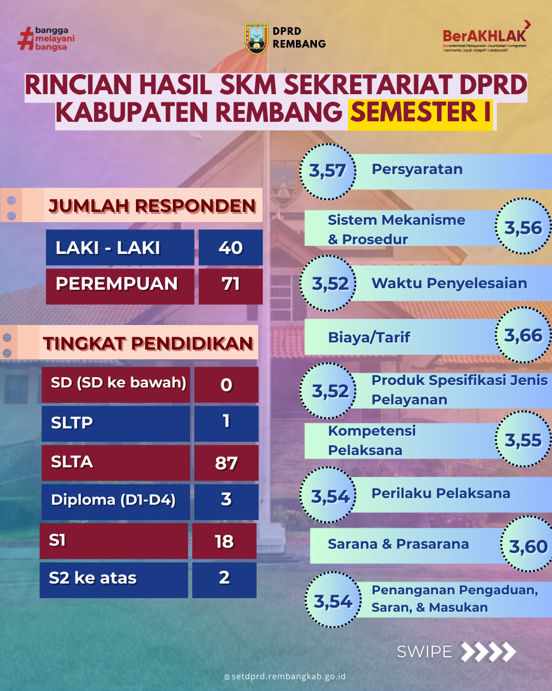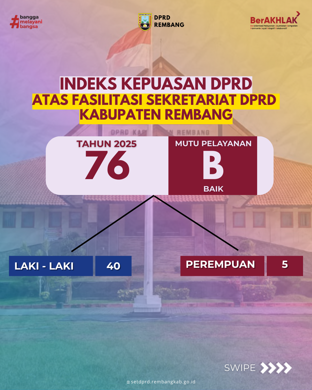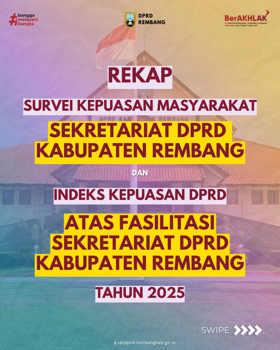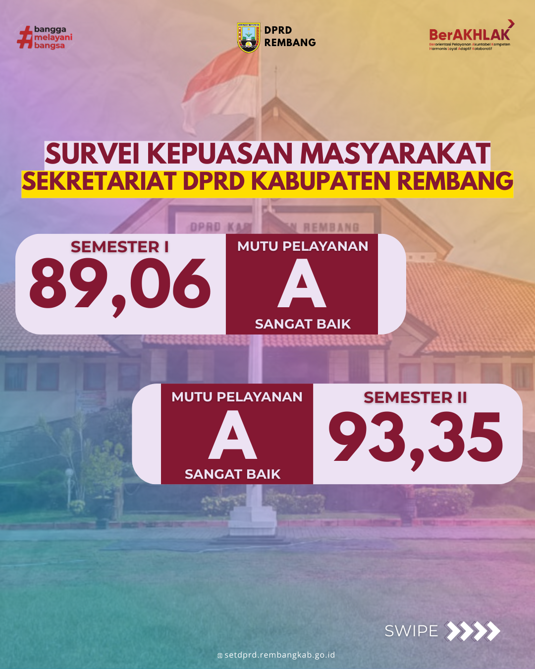 Hasil SKM 19 Nov 2017 By Sekretariat Dewan Perwakilan Rakyat DPRD Kabupaten Rembang Pemkab Rembang | Rembang | Pemerintahan 1 min read Share this Post Berikut ini adalah Hasil dari Survei Kepuasan Masyarakat atas Sekretariat DPRD dan Indeks Kepuasan DPRD atas Fasilitasi Sekretariat DPRD Kabupaten Rembang Maklumat Pelayanan